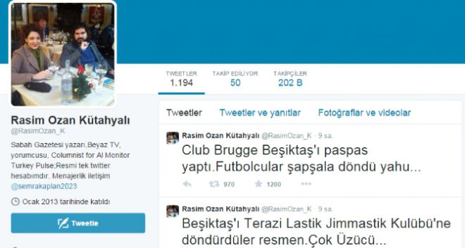 Beşiktaş Club Brugge’e 3-1 yenilerek Avrupa defterini kapatırken, Gazeteci Rasim Ozan Kütahyalı’nın maç sonu yorumları tepki topladı. Kütahyalı, Twitter hesabından, "Beşiktaş’ı Terazi Lastik Jimnastik Kulübü’ne döndürdüler resmen. Çok Üzücü. Club Brugge Beşiktaş’ı paspas yaptı. Futbolcular şapşala döndü yahu" yazdı. Bu ifadeler siyah beyazlı taraftarları çıldırttı. Beşiktaşlılar Kütahyalı’ya sosyal medyada adeta öfke kustu.